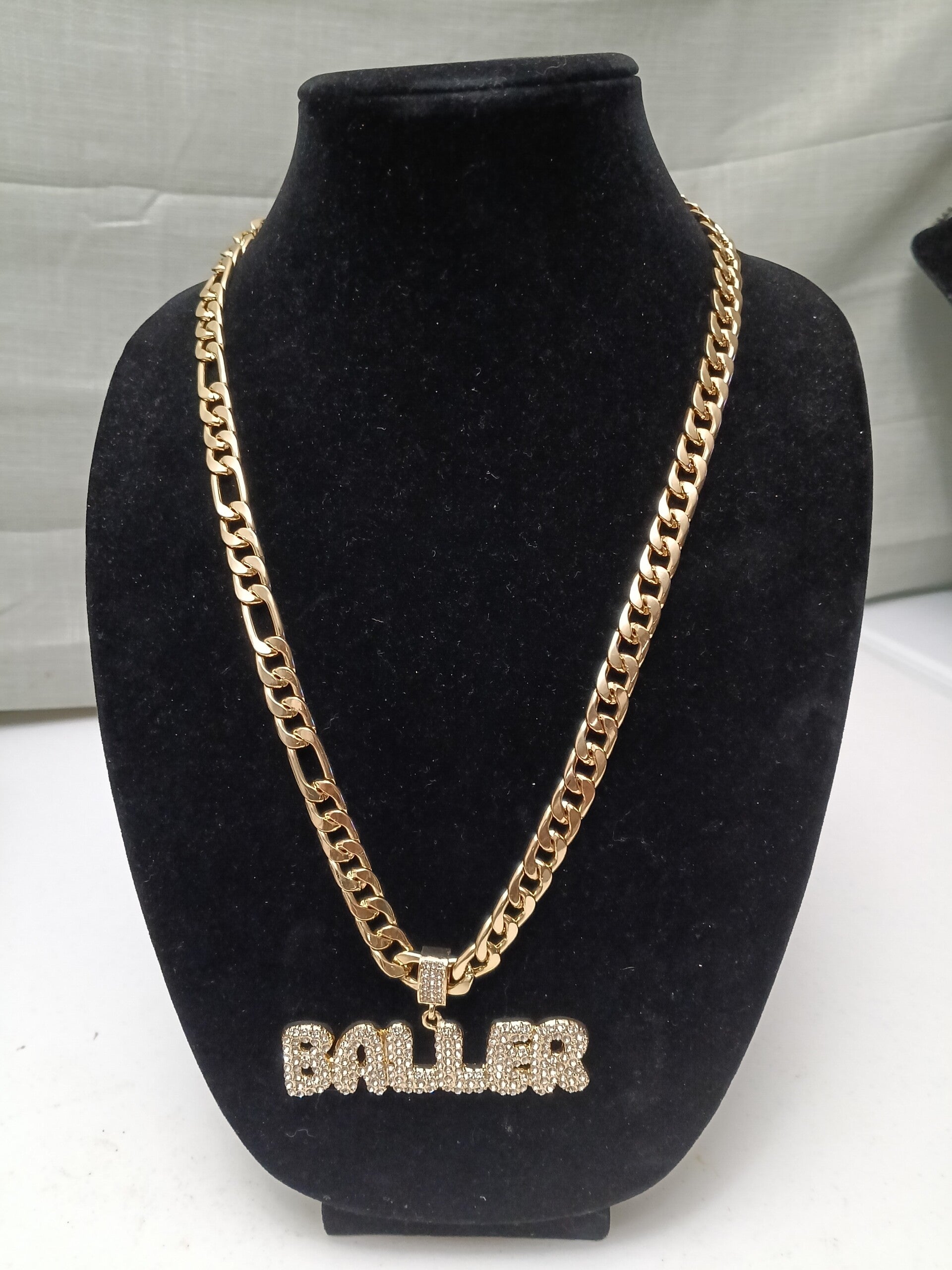 Sterling steel gold plated chain with Baller pendant